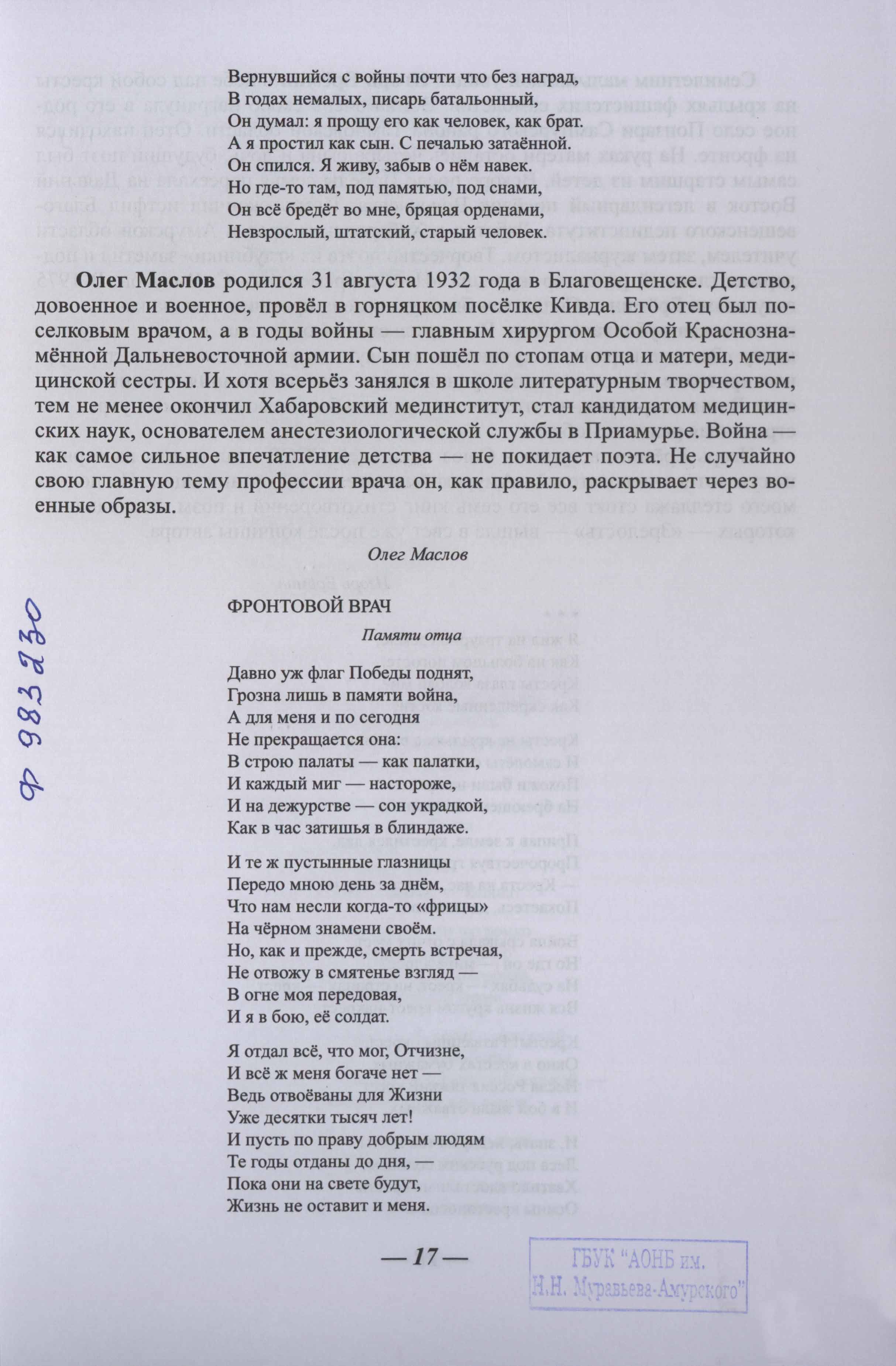 | Маслов, О. К. Избранное / О. К. Маслов. – Благовещенск : Зея, 2002. – 272 с. – Текст (визуальный) : непосредственный. | |
