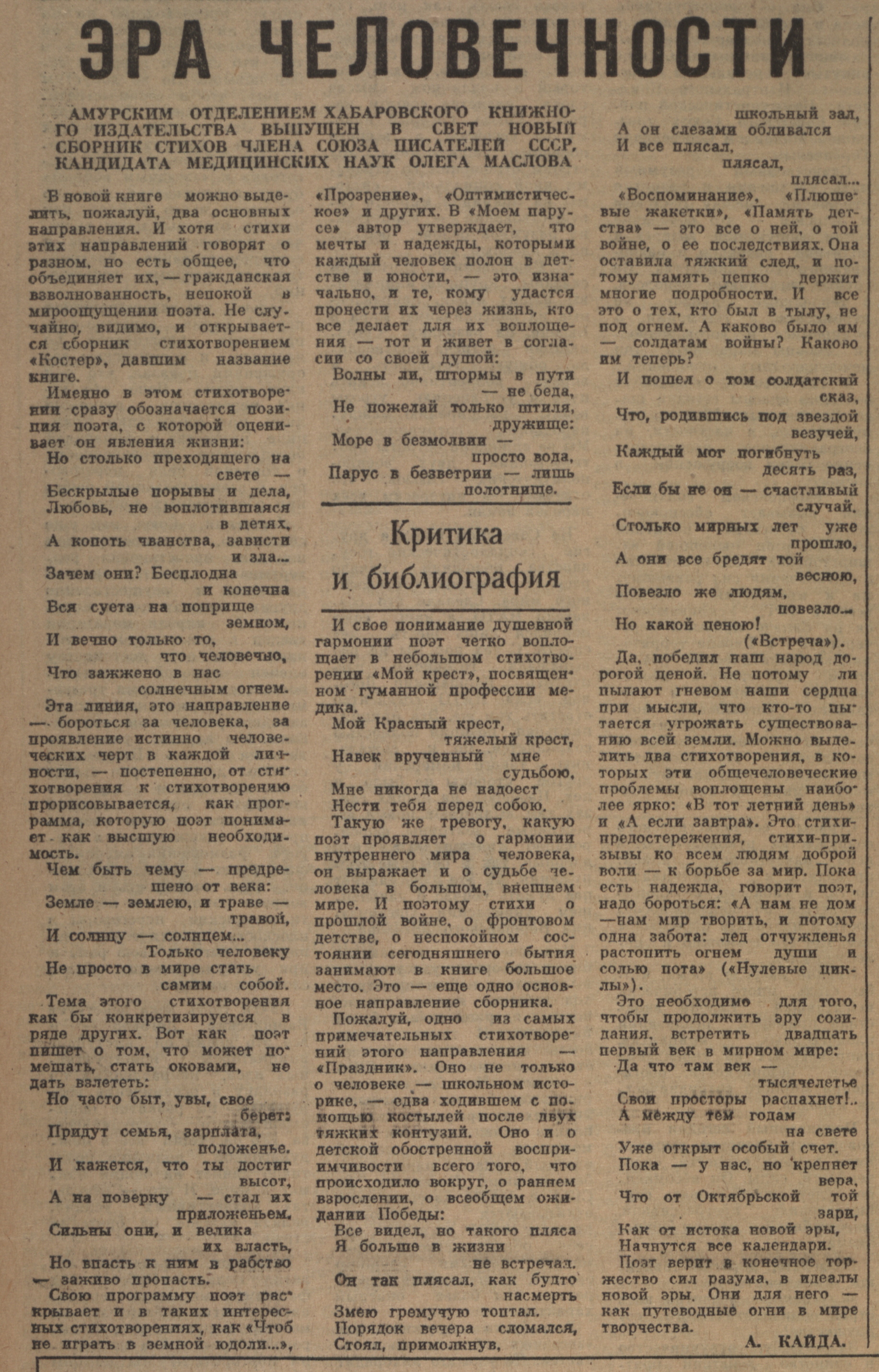 | Маслов, О. К. Костер : стихи / О. К. Маслов. – Благовещенск : Хабаровское книжное издательство, Амурское отделение, 1985. – 48 с. – Текст (визуальный) : непосредственный. | |